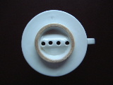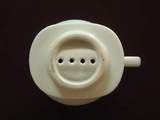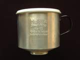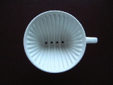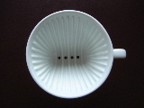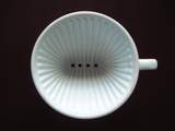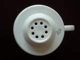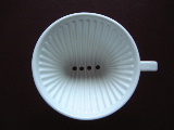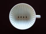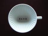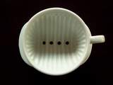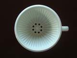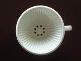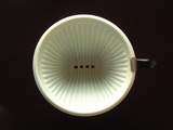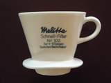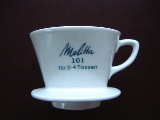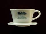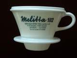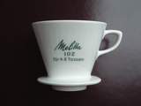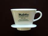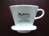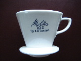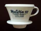 Dieser Filter markiert den Umbruch vom Filterpapier zur Filtertüte. Ansonsten bleiben die alten Merkmale, wie runder Henkel und Auf- schrift erhalten. Markant auch die ovale Absetzplatte. |