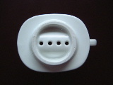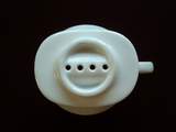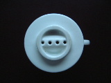 Ein Filter der Größe 102 aus dem Jahr 1939, der die bis heute erhaltene, typische Form besitzt. Einziger großer Unterschied ist die damalige Form des "Ohren"-Henkels. Die Tassenangabe wurde später fallen gelassen. Bei diesem Filter sitzt der Aufdruck etwas schräg. |